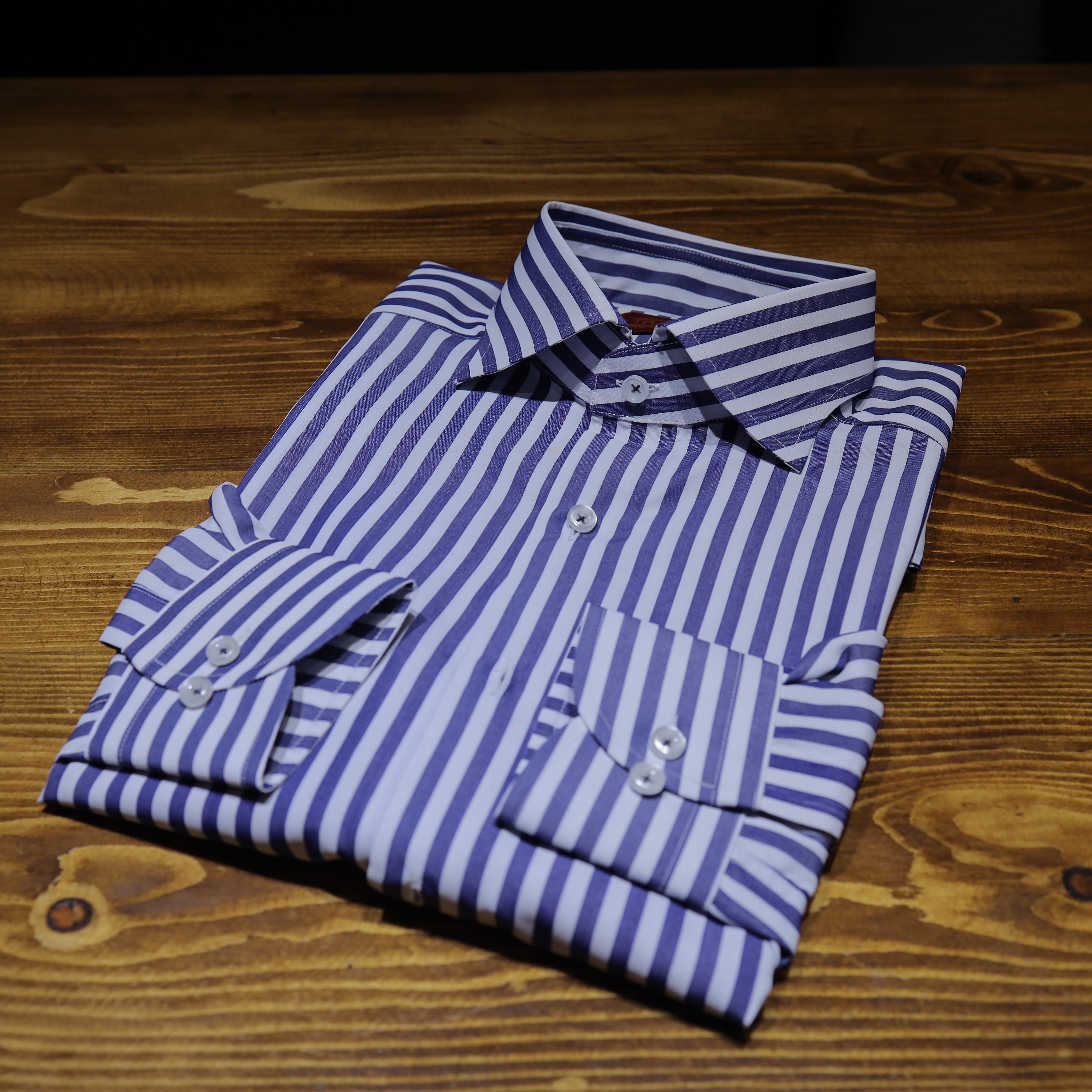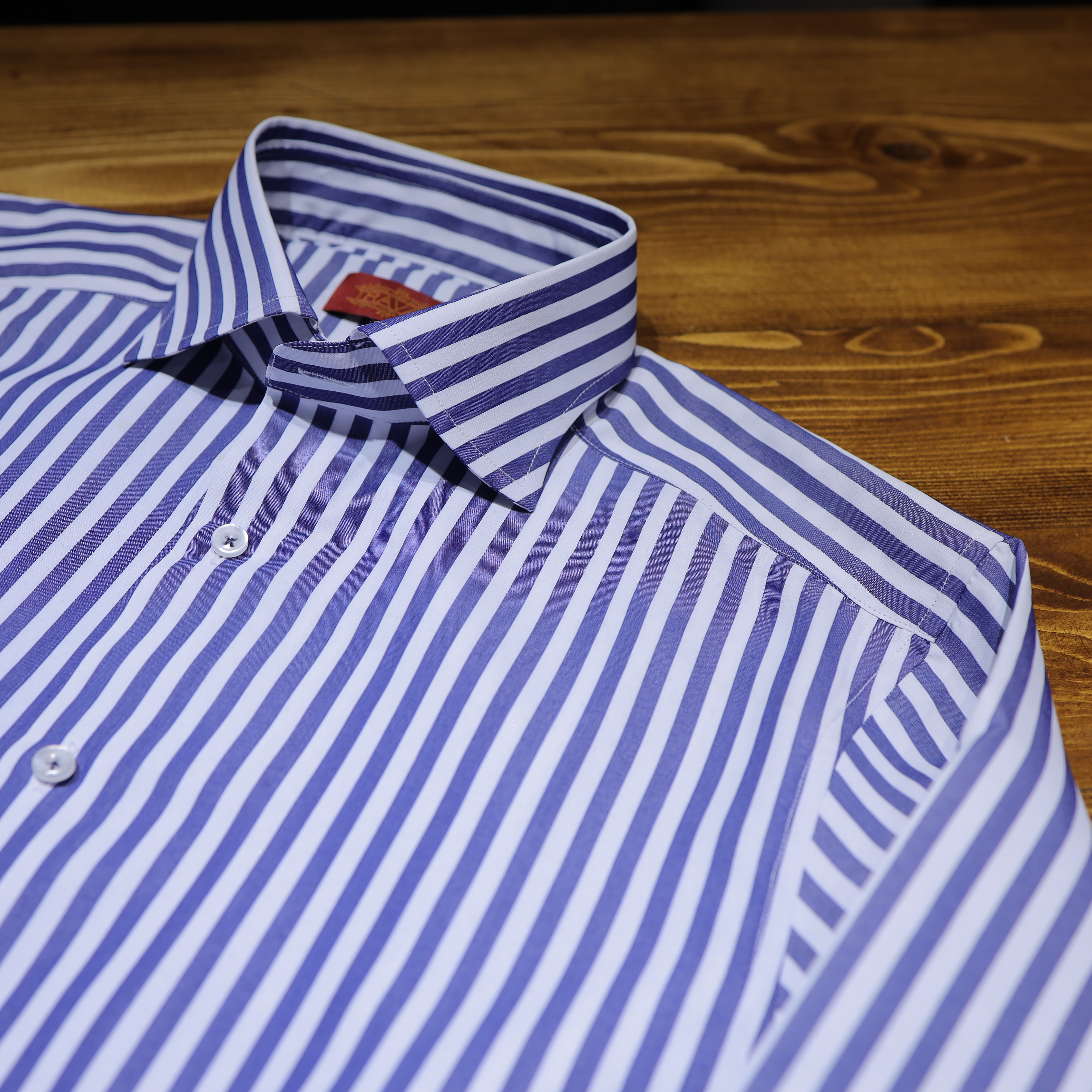 Sơ Mi Kẻ Dark Blue 5mm cổ speard